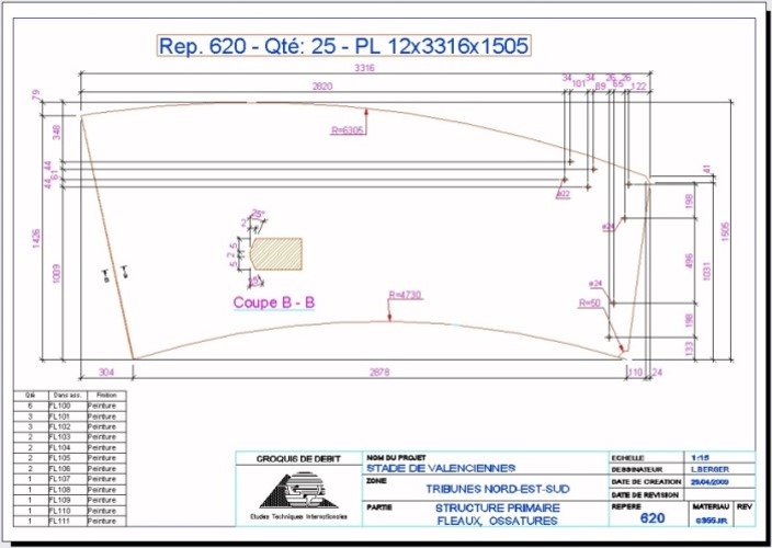 - Lista de elementos, lista de parafusos e porcas, lista de corte com representação.